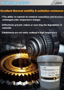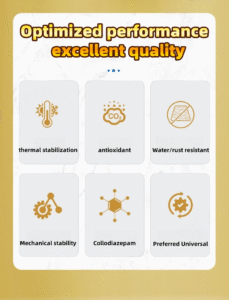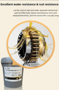 In terms of temperature resistance, the grease features a high dropping point of 175–180°C, depending on the grade. This enables secure lubrication performance in elevated temperature environments while preventing breakdown, thinning, or grease loss. Combined with an oxidation stability pressure drop of ≤0.070 MPa, it effectively resists oxidation and thermal degradation over long working cycles.