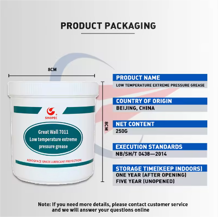 Great Wall 7011 Low Temperature Extreme Pressure Grease delivers reliable lubrication under extreme cold and heavy load conditions, combining solid lubricant protection, excellent mechanical stability, and strong EP performance. It represents a technically competitive and economically attractive alternative to well-known international brands such as Klüber, Mobil, and Shell, particularly in aerospace ground equipment, precision machinery, and heavy industrial applications.
