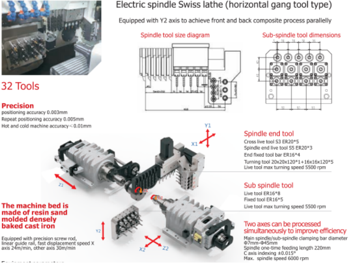 Sub-spindle tools: 5 ER16 fixed + 8 ER16 live tools